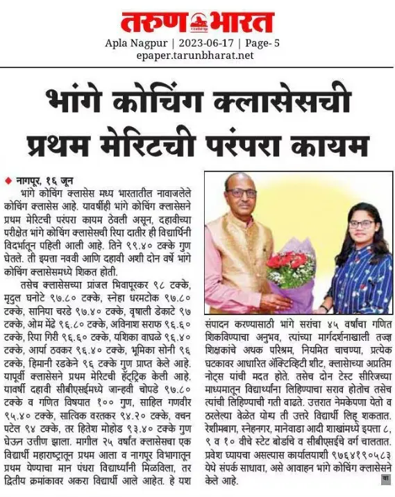 Our approach combines concept clarity, regular practice, and personal attention to help students score high in board exams while also building confidence for future studies. With a proven track record of success, Bhange Coaching Classes has become the trusted choice for parents and students who want results that last.