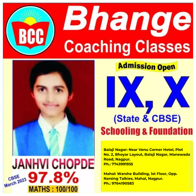 Bhange is the best coaching classes among the Nagpur Coaching, its the best and good and the most faculties coaching from my experience, the teachers staff is very good and gives more stress on self studies and the doubt session